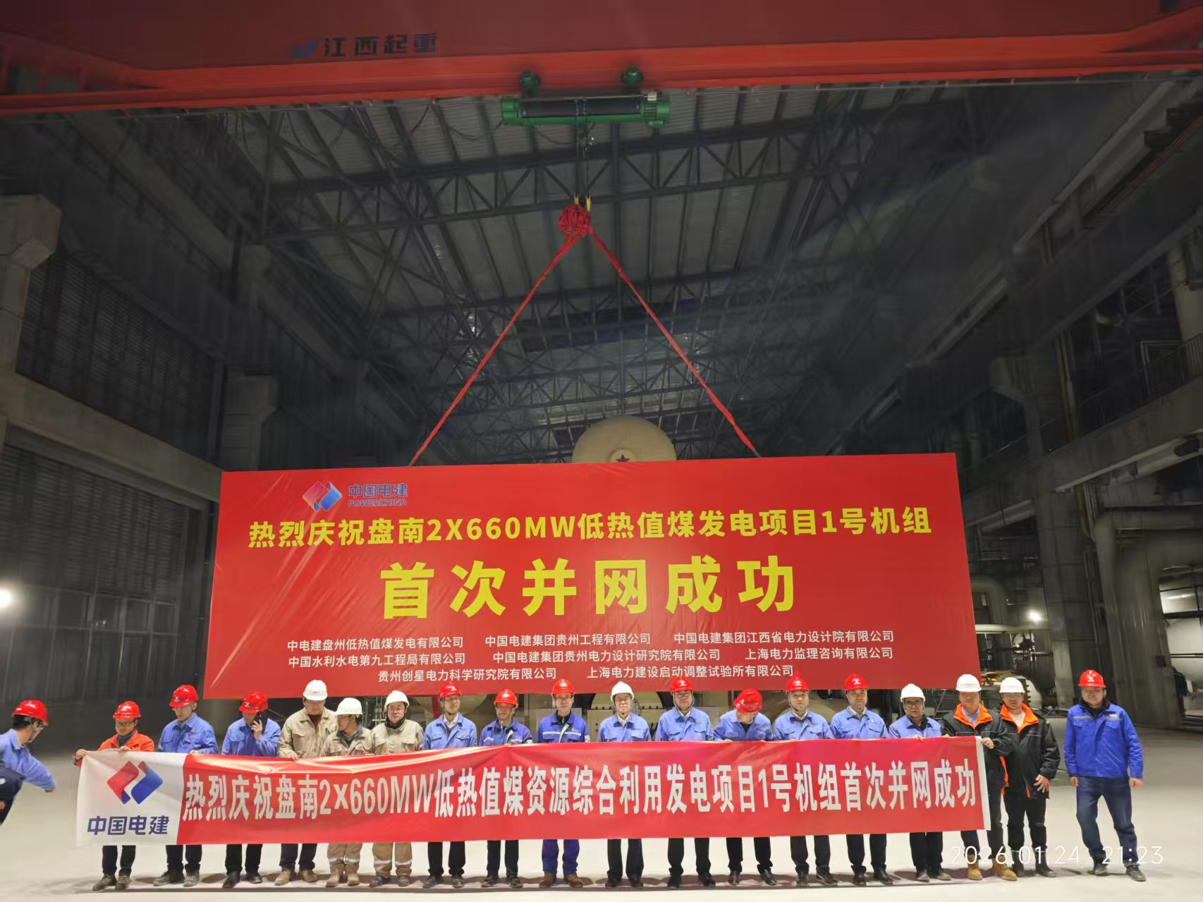 2026年1月24日21时16分,由我公司监理的贵州盘南2×660兆瓦低热值煤资源综合利用发电项目1号机组首次并网一次成功,机组各系统运行平稳,主要参数指标优良,标志着机组正式接入电网,已具备对外输送电能力,为后续机组168小时满负荷试运行奠定坚实基础,向着实现正式投产运营迈出坚实有力一步。